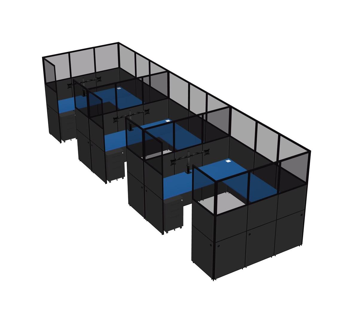 Système De Panneaux En U Prism Blue Pour 3 Personnes + Bras D'écran (bras Doubles) + Tiroirs Mobiles En Métal Pour 3 Utilisateur(s)