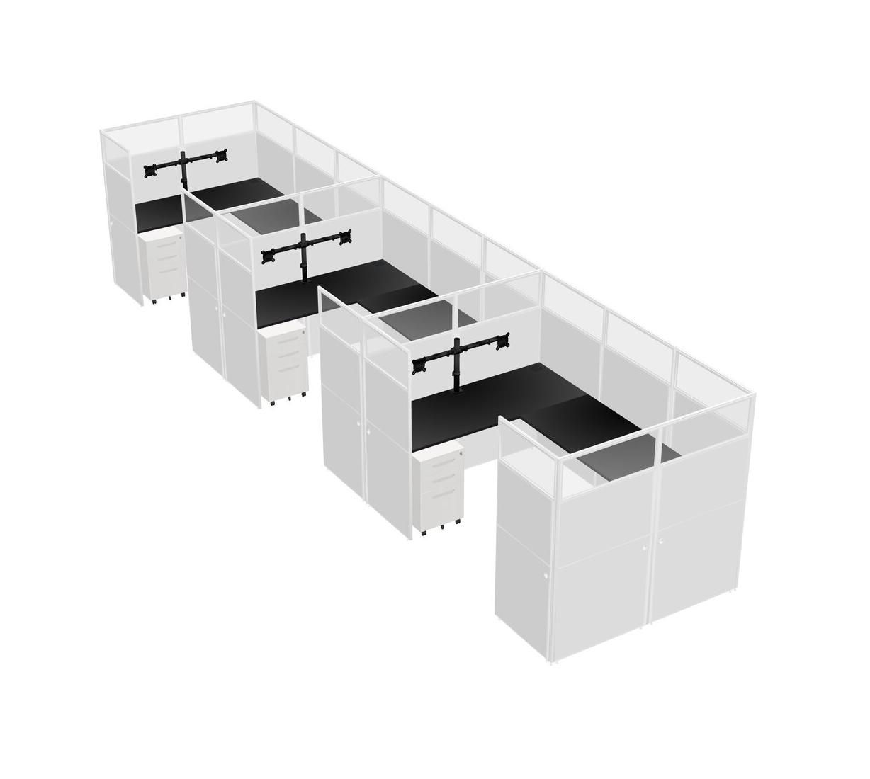 Système De Panneaux En U Noir Pour 3 Personnes + Bras D'écran (bras Doubles) + Tiroirs Mobiles En Métal Pour 3 Utilisateur(s)