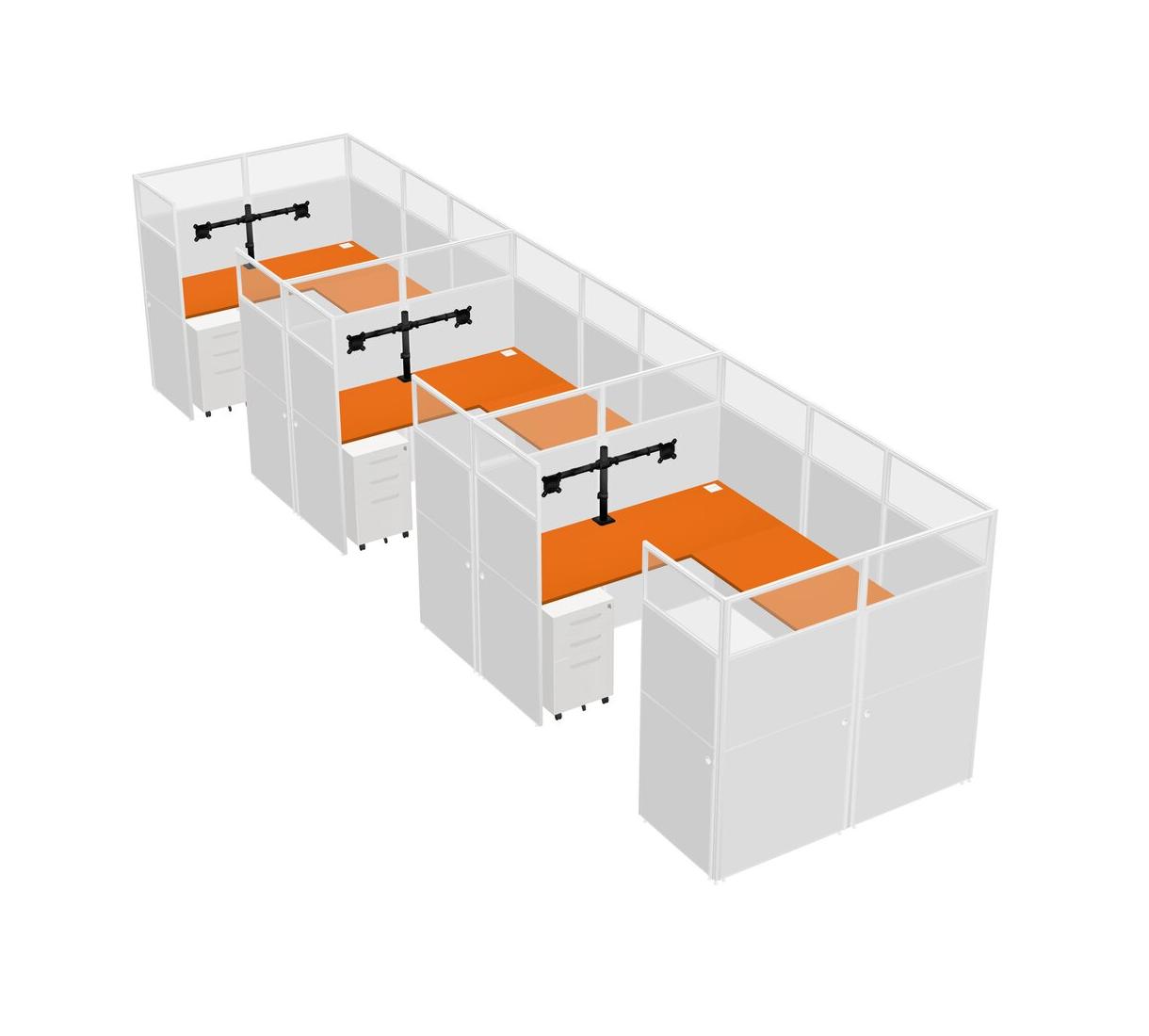 Système De Panneaux En U Orange Pour 3 Personnes + Bras De Moniteur (bras Doubles) + Tiroirs Mobiles En Métal Pour 3 Utilisateur(s)