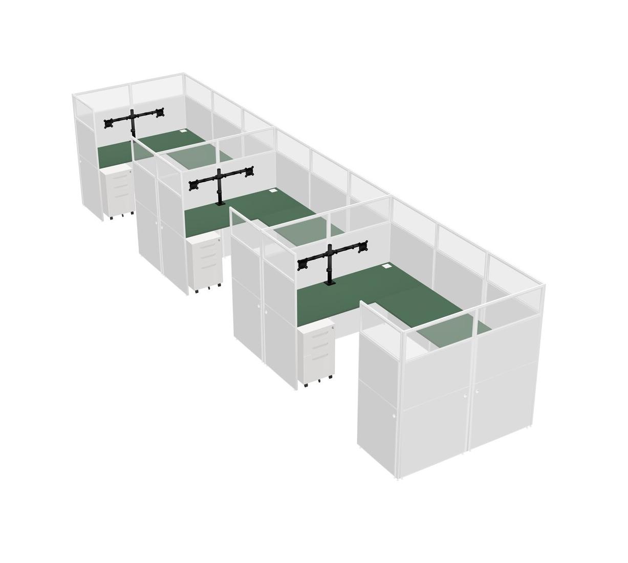 Système De Panneaux En U Vert Pour 3 Personnes + Bras De Moniteur (bras Doubles) + Tiroirs Mobiles En Métal Pour 3 Utilisateur(s)