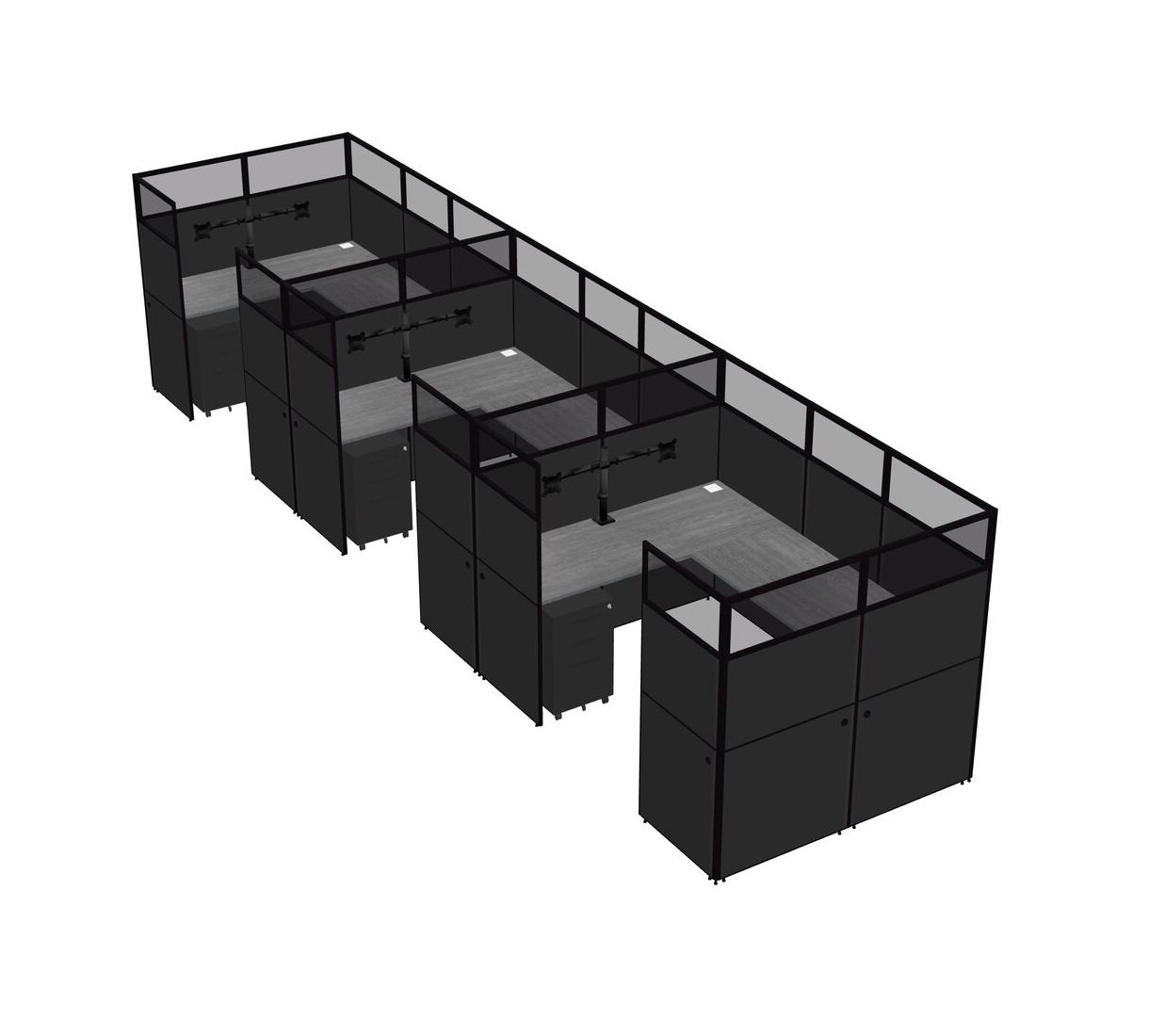 Système De Panneaux En U Gris Pour 3 Personnes + Bras D'écran (bras Doubles) + Tiroirs Mobiles En Métal Pour 3 Utilisateur(s)