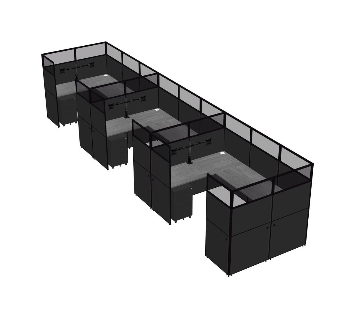 Système De Panneaux En U Gris Pour 3 Personnes + Bras D'écran (bras Doubles) + Tiroirs Mobiles En Métal Pour 3 Utilisateur(s)