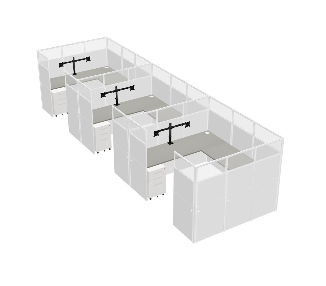 Système De Panneaux En U Grey Shadows Pour 3 Personnes + Bras D'écran (bras Doubles) + Tiroirs Mobiles En Métal Pour 3 Utilisateur(s)
