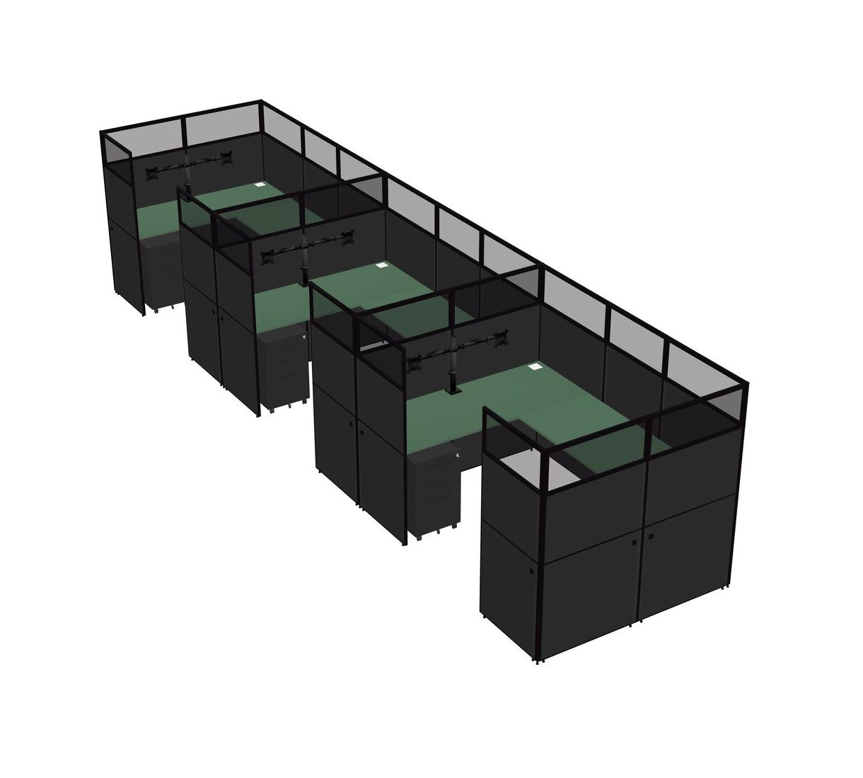 Système De Panneaux En U Vert Pour 3 Personnes + Bras De Moniteur (bras Doubles) + Tiroirs Mobiles En Métal Pour 3 Utilisateur(s)