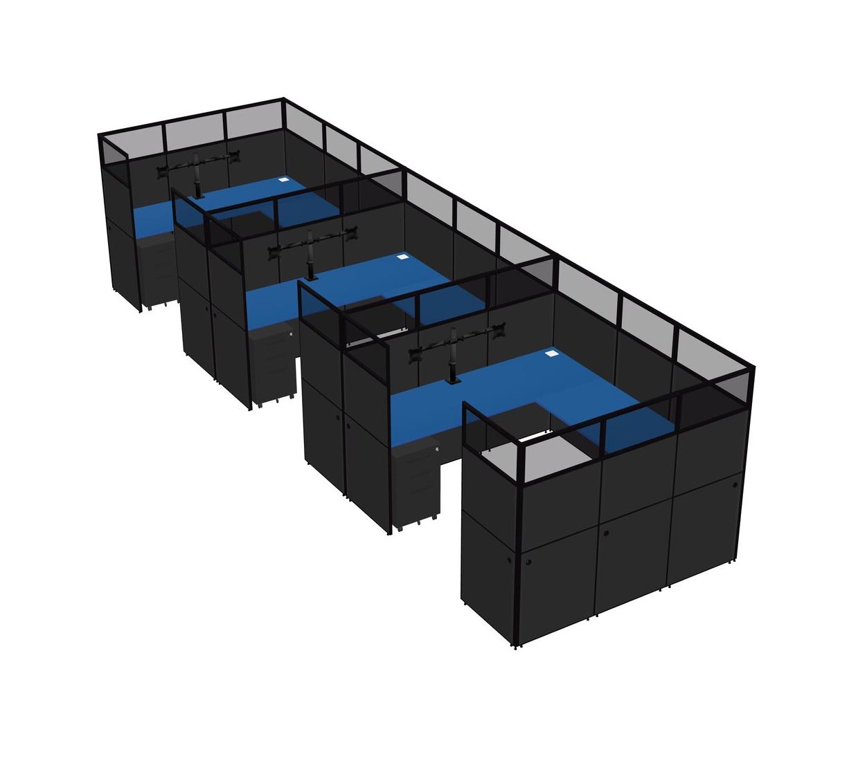 Système De Panneaux En U Prism Blue Pour 3 Personnes + Bras D'écran (bras Doubles) + Tiroirs Mobiles En Métal Pour 3 Utilisateur(s)