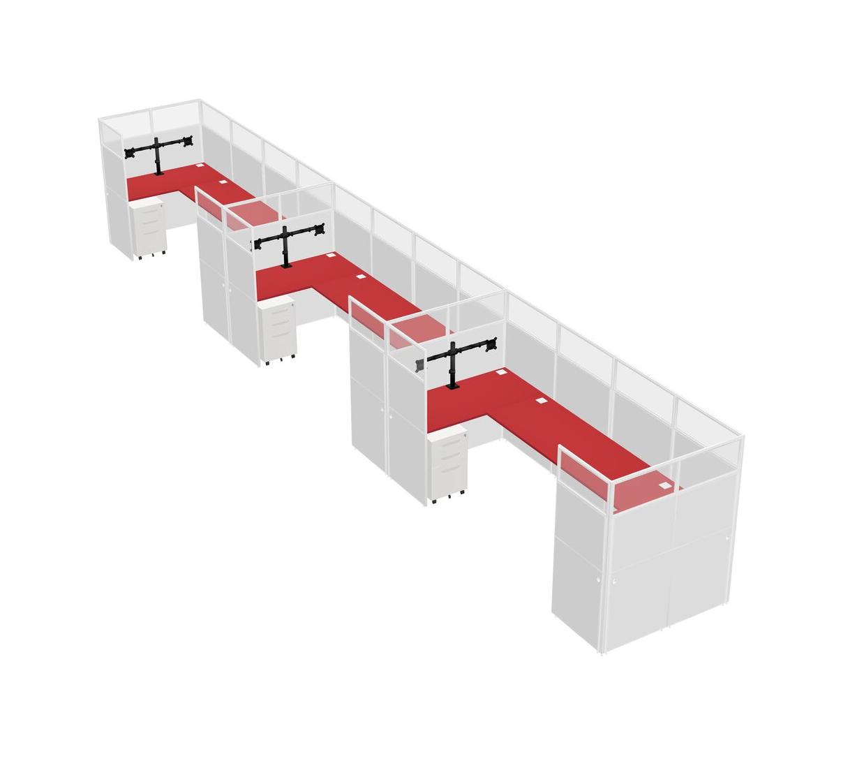Système De Panneaux En U Prism Red Pour 3 Personnes + Bras D'écran (bras Doubles) + Tiroirs Mobiles En Métal Pour 3 Utilisateur(s)