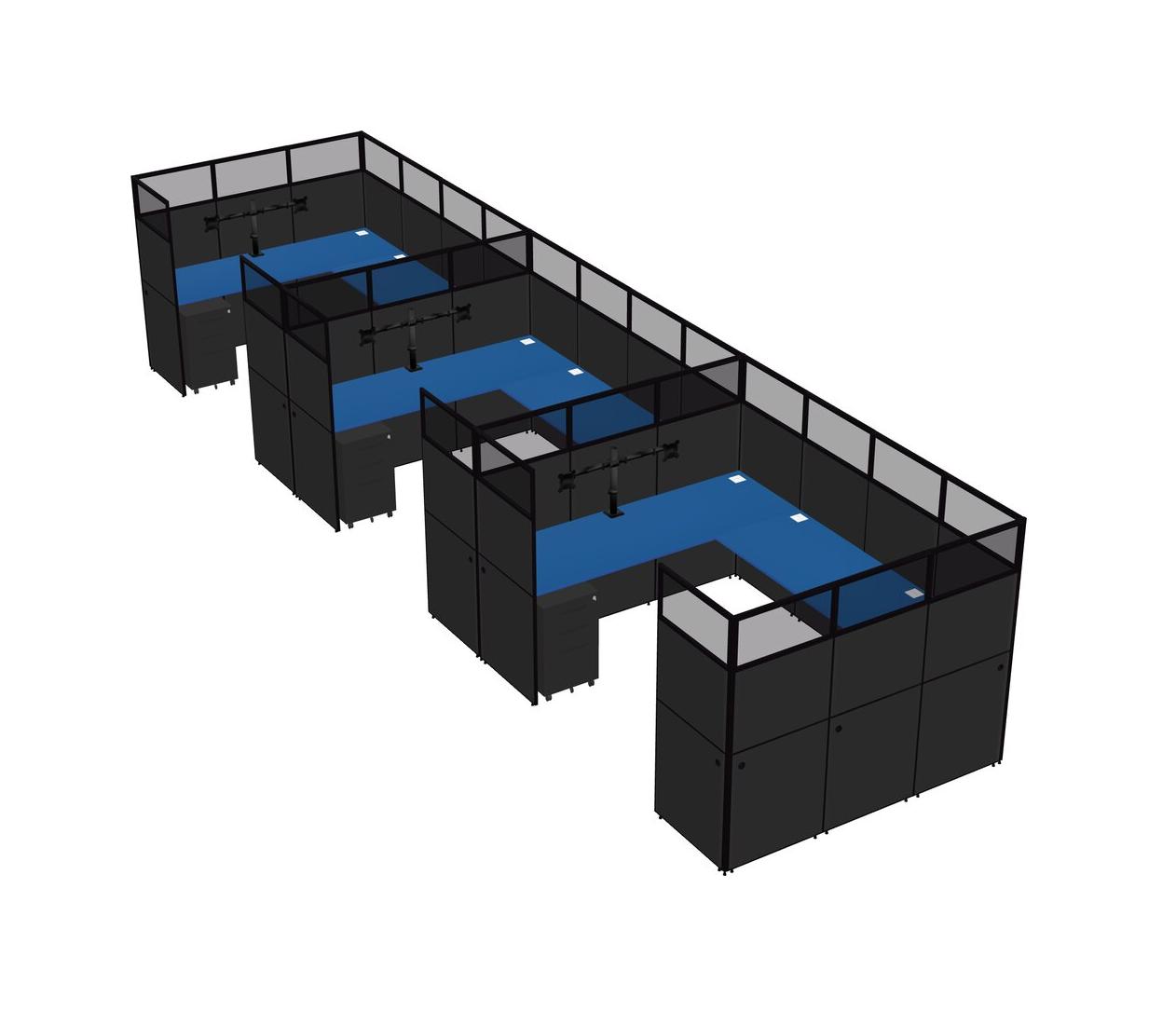 Système De Panneaux En U Prism Blue Pour 3 Personnes + Bras D'écran (bras Doubles) + Tiroirs Mobiles En Métal Pour 3 Utilisateur(s)