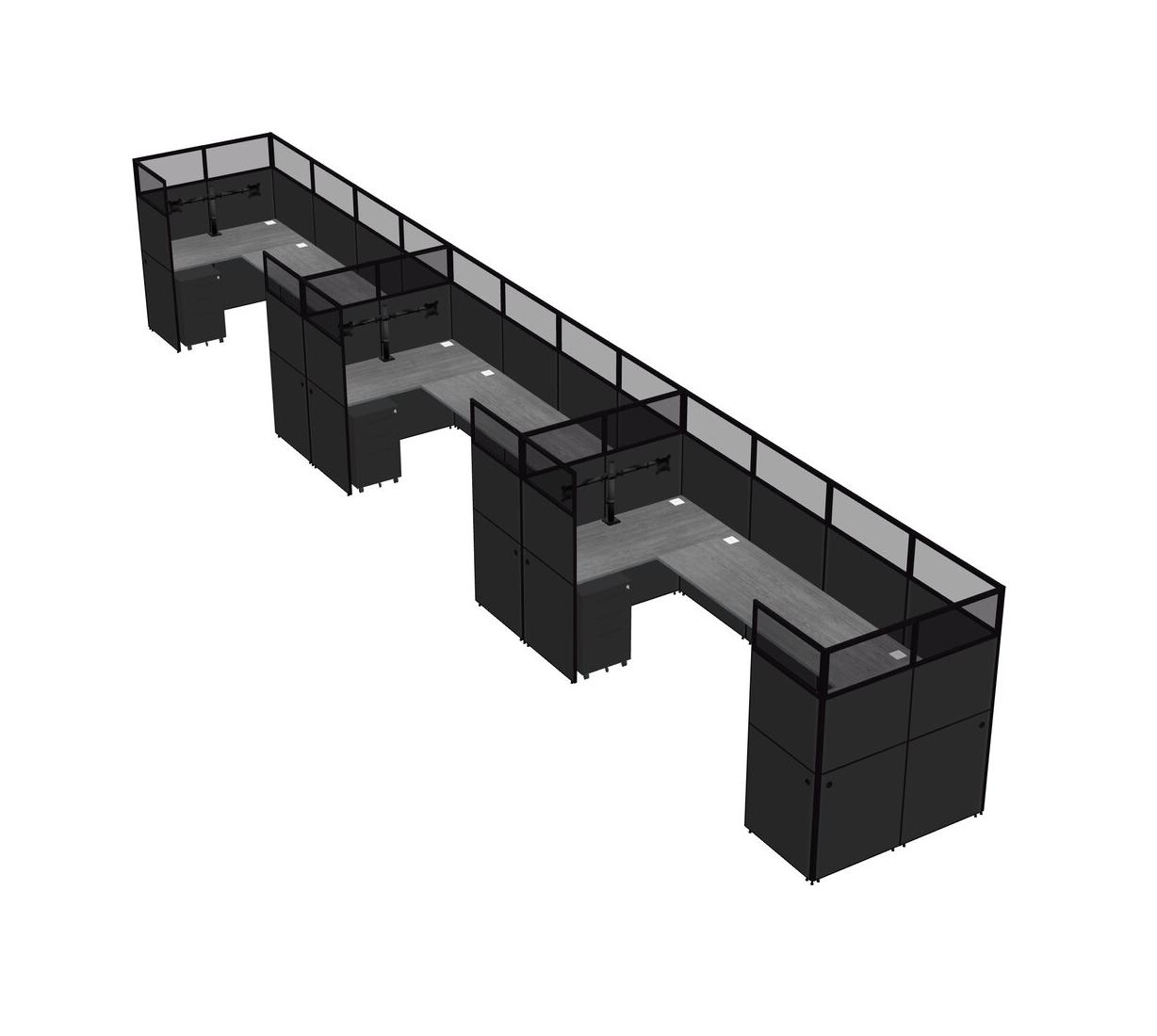 Système De Panneaux En U Gris Pour 3 Personnes + Bras D'écran (bras Doubles) + Tiroirs Mobiles En Métal Pour 3 Utilisateur(s)