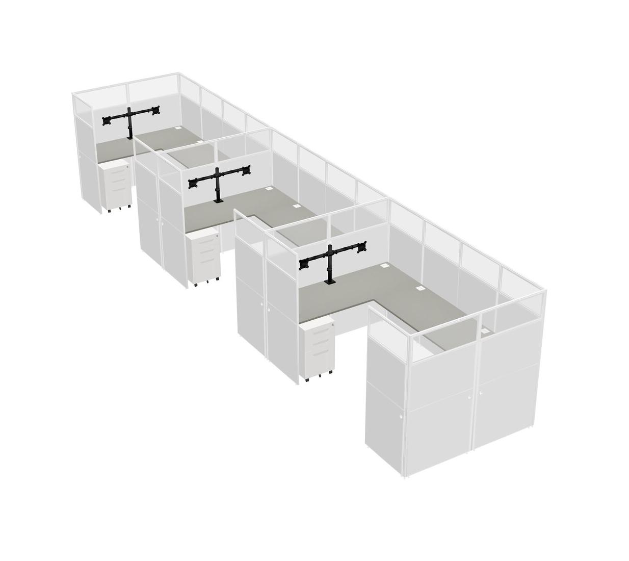 Système De Panneaux En U Grey Shadows Pour 3 Personnes + Bras D'écran (bras Doubles) + Tiroirs Mobiles En Métal Pour 3 Utilisateur(s)