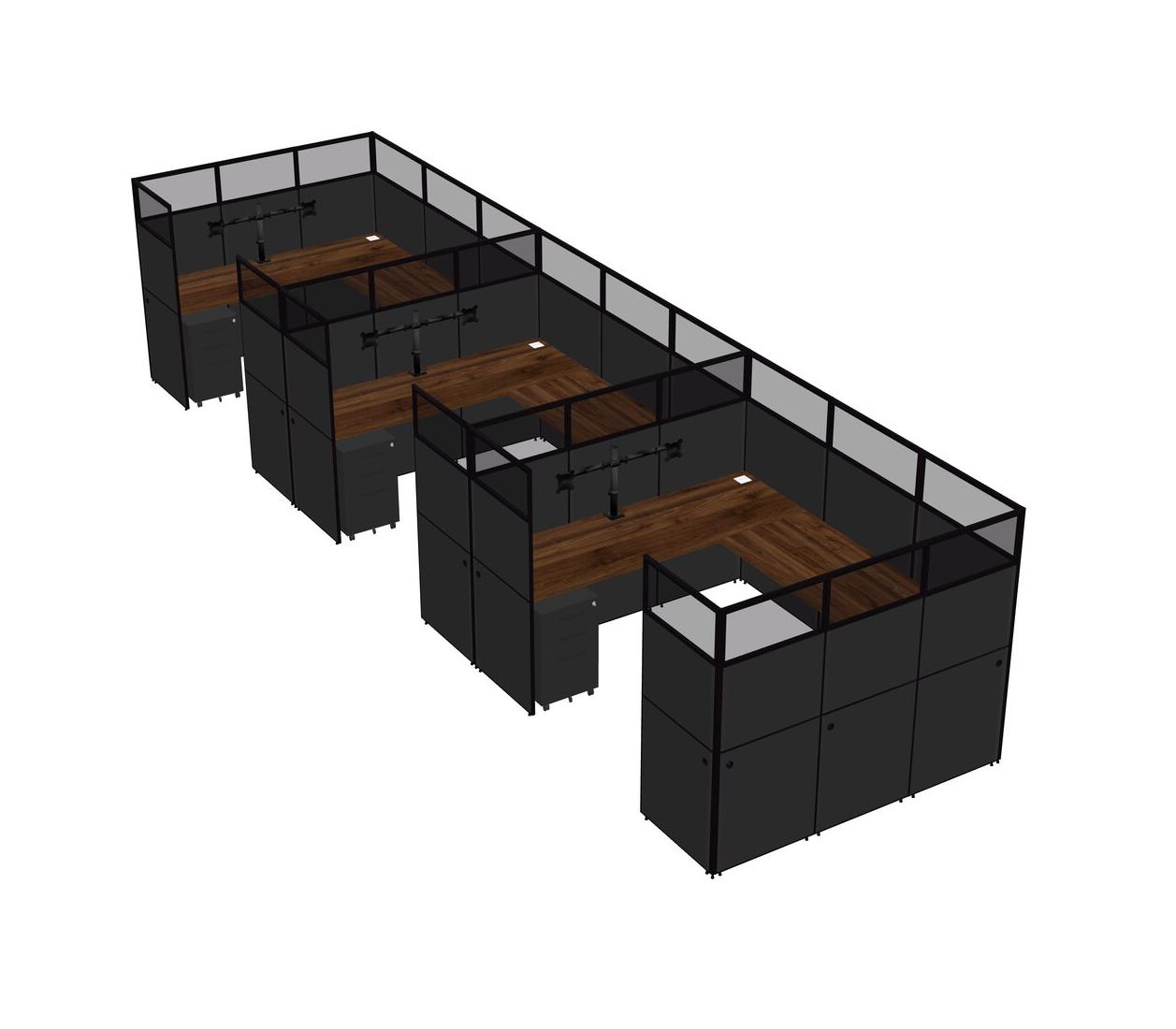 Système De Panneaux En U En Noyer Columbia Pour 3 Personnes + Bras D'écran (bras Doubles) + Tiroirs Mobiles En Métal Pour 3 Utilisateur(s)