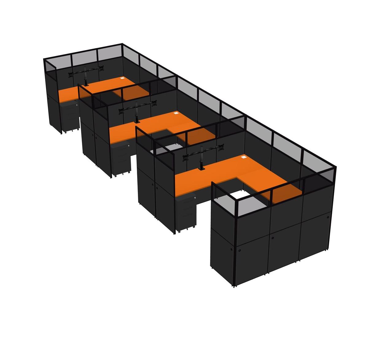 Système De Panneaux En U Orange Pour 3 Personnes + Bras De Moniteur (bras Doubles) + Tiroirs Mobiles En Métal Pour 3 Utilisateur(s)