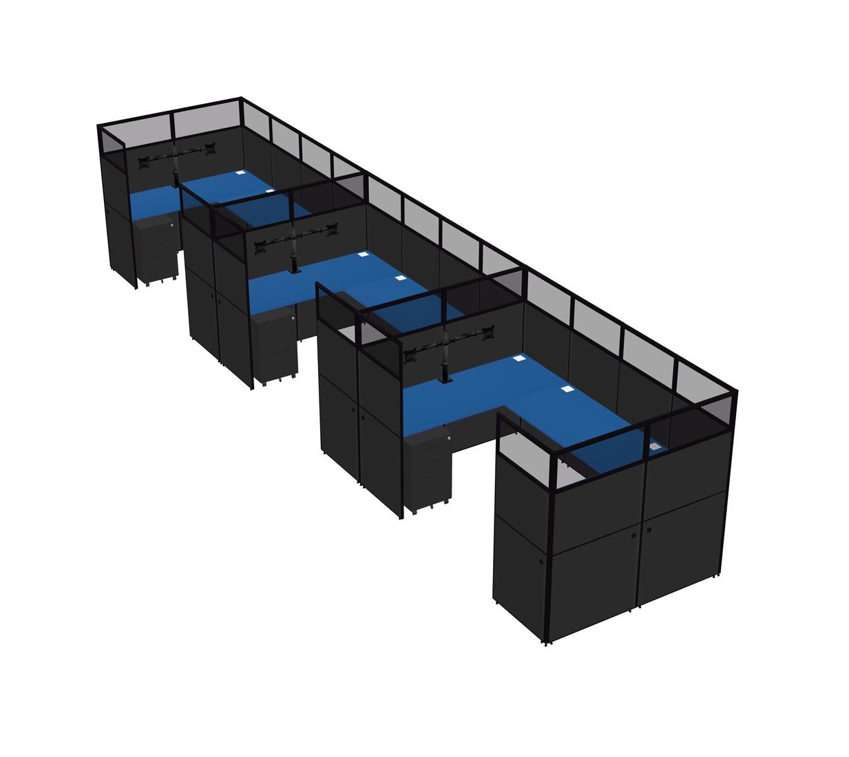 Système De Panneaux En U Prism Blue Pour 3 Personnes + Bras D'écran (bras Doubles) + Tiroirs Mobiles En Métal Pour 3 Utilisateur(s)