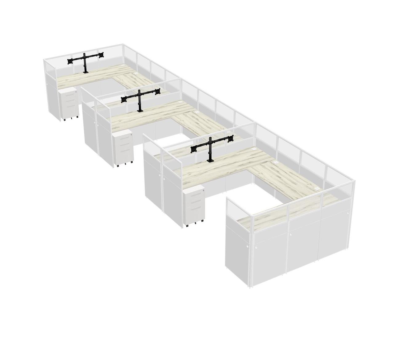 Système De Panneaux En U Heinne Holz Pour 3 Personnes + Bras D'écran (bras Doubles) + Tiroirs Mobiles En Métal Pour 3 Utilisateur(s)
