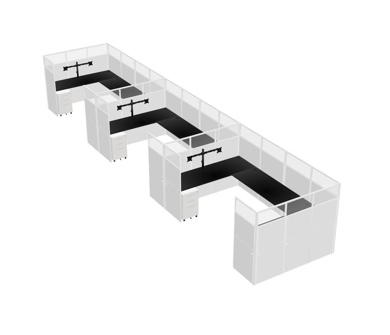 Système De Panneaux En U Noir Pour 3 Personnes + Bras D'écran (bras Doubles) + Tiroirs Mobiles En Métal Pour 3 Utilisateur(s)