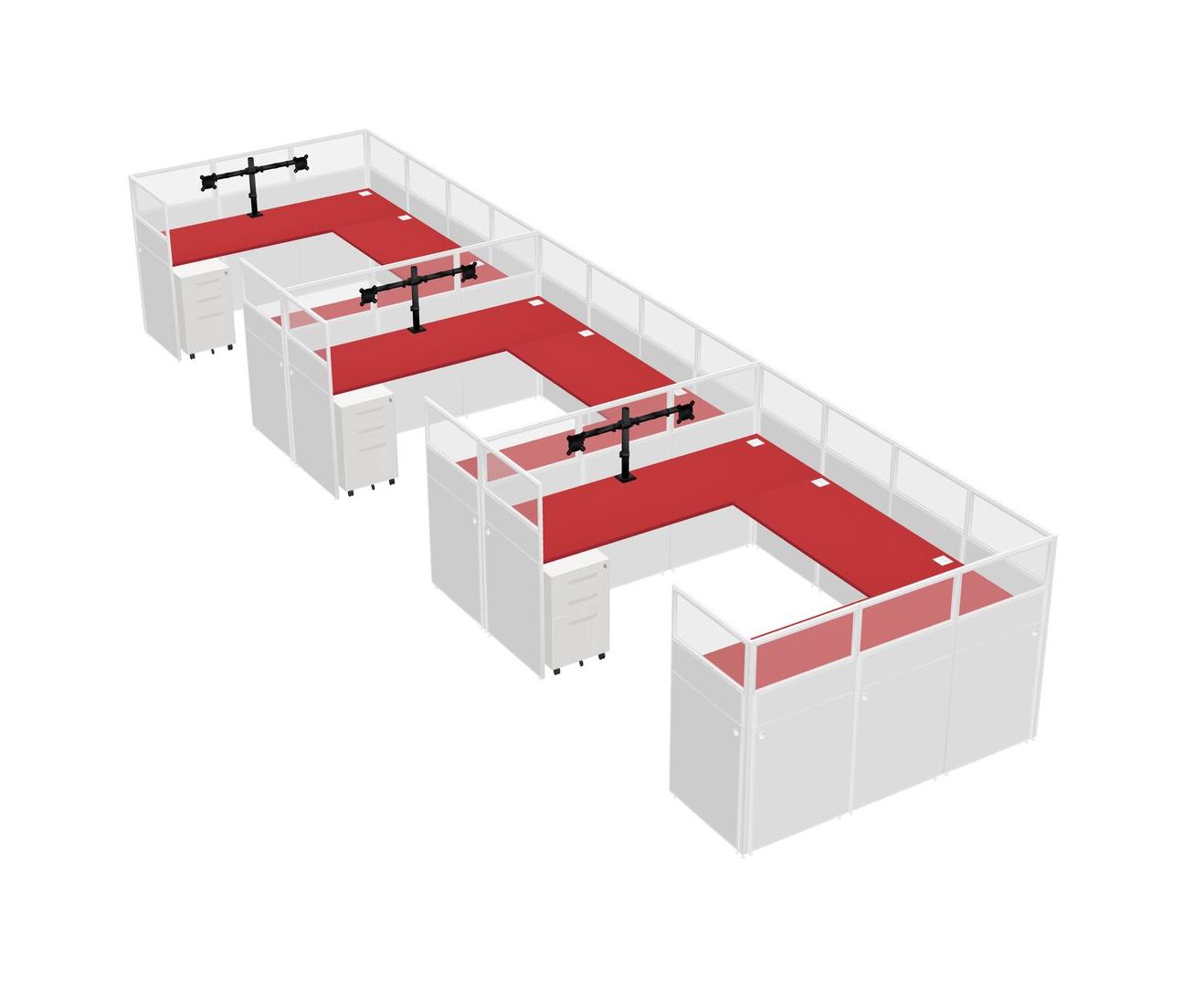 Système De Panneaux En U Prism Red Pour 3 Personnes + Bras D'écran (bras Doubles) + Tiroirs Mobiles En Métal Pour 3 Utilisateur(s)