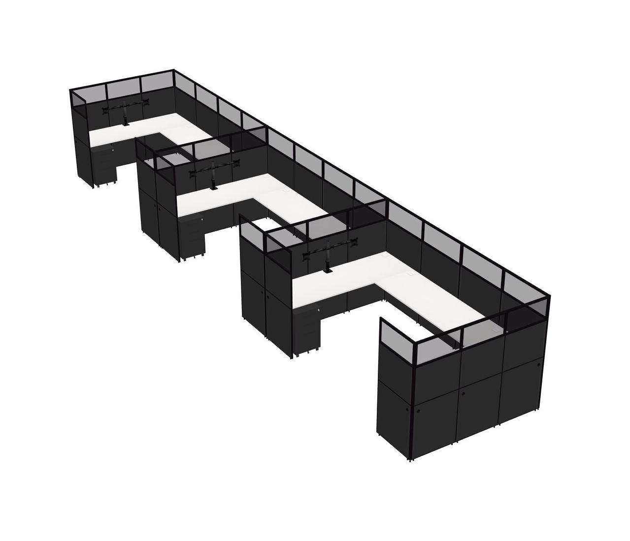 Système De Panneaux Blancs En U Pour 3 Personnes + Bras D'écran (bras Doubles) + Tiroirs Mobiles En Métal Pour 3 Utilisateur(s)