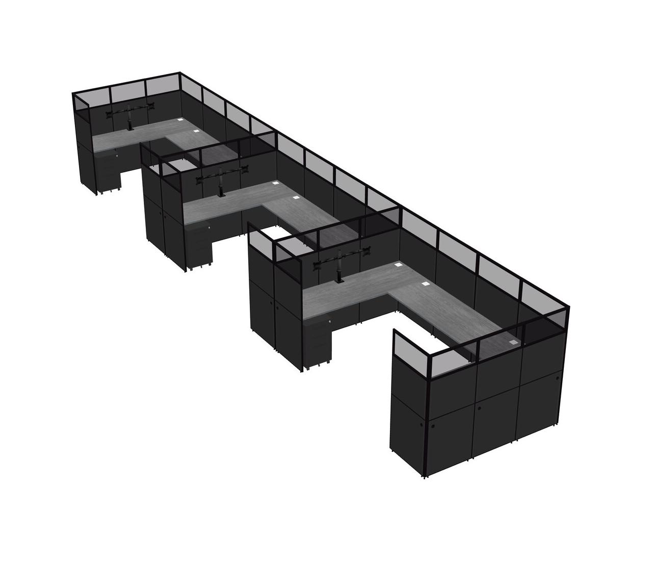 Système De Panneaux En U Gris Pour 3 Personnes + Bras D'écran (bras Doubles) + Tiroirs Mobiles En Métal Pour 3 Utilisateur(s)