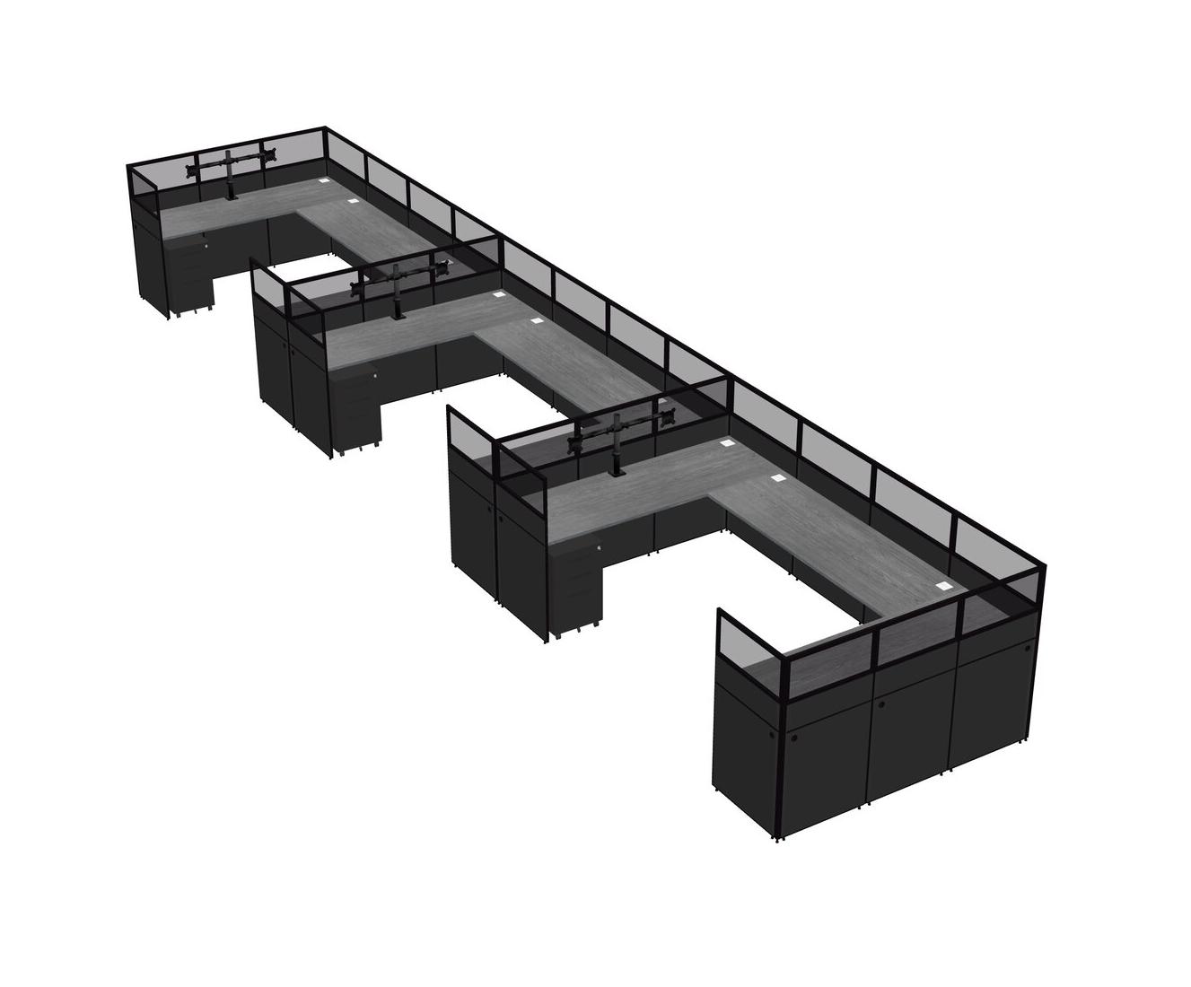 Système De Panneaux En U Gris Pour 3 Personnes + Bras D'écran (bras Doubles) + Tiroirs Mobiles En Métal Pour 3 Utilisateur(s)
