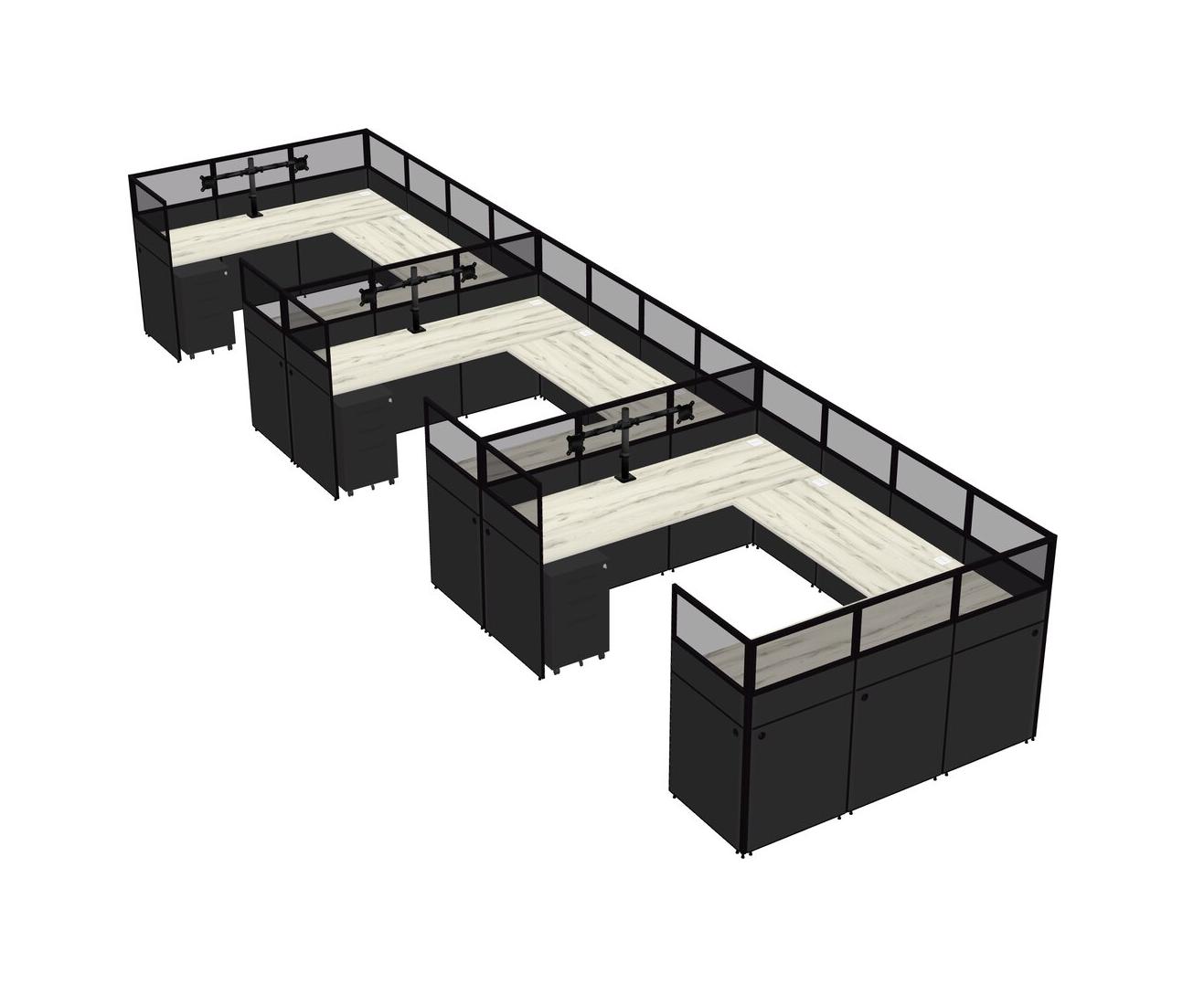 Système De Panneaux En U Heinne Holz Pour 3 Personnes + Bras D'écran (bras Doubles) + Tiroirs Mobiles En Métal Pour 3 Utilisateur(s)