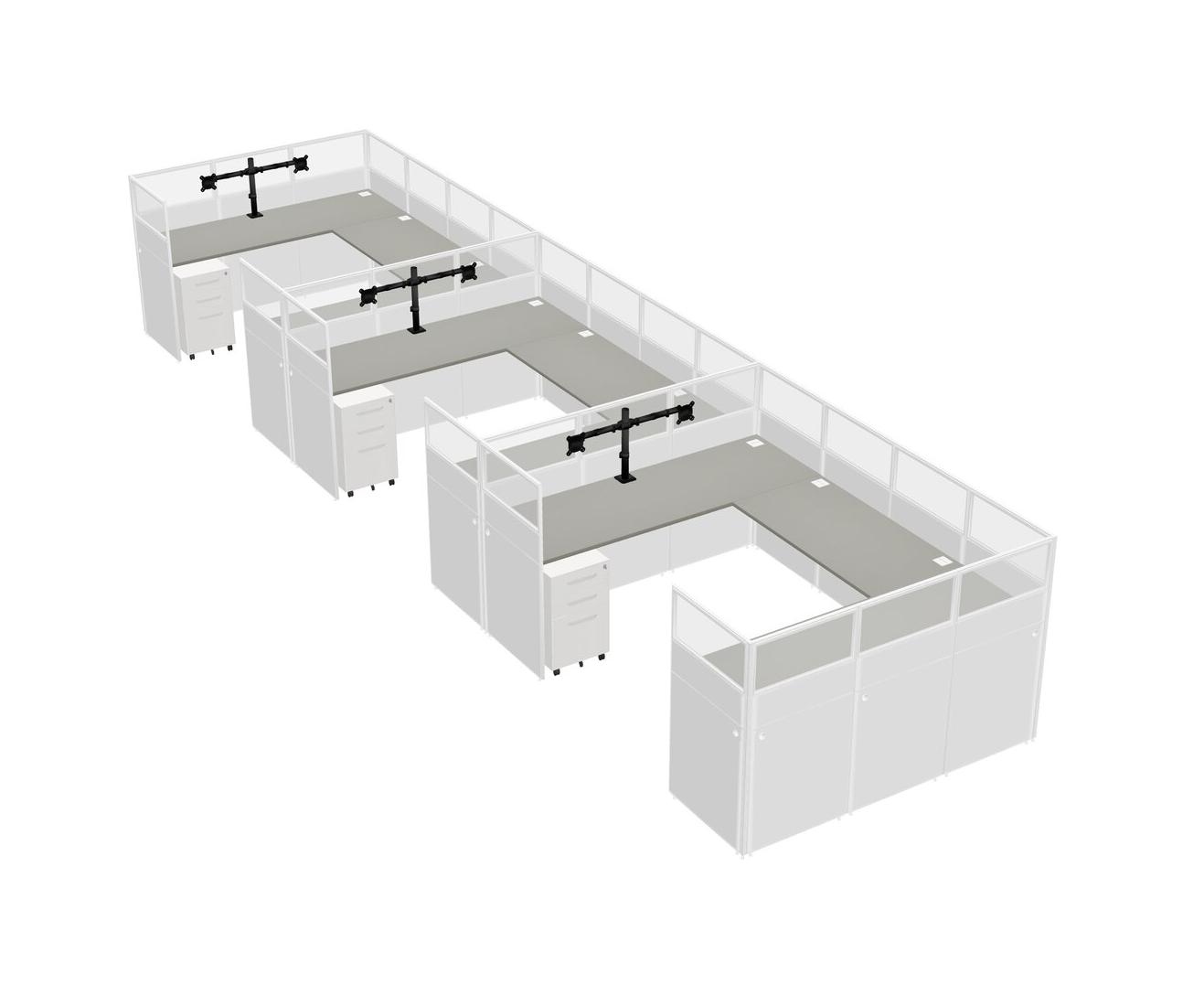 Système De Panneaux En U Grey Shadows Pour 3 Personnes + Bras D'écran (bras Doubles) + Tiroirs Mobiles En Métal Pour 3 Utilisateur(s)