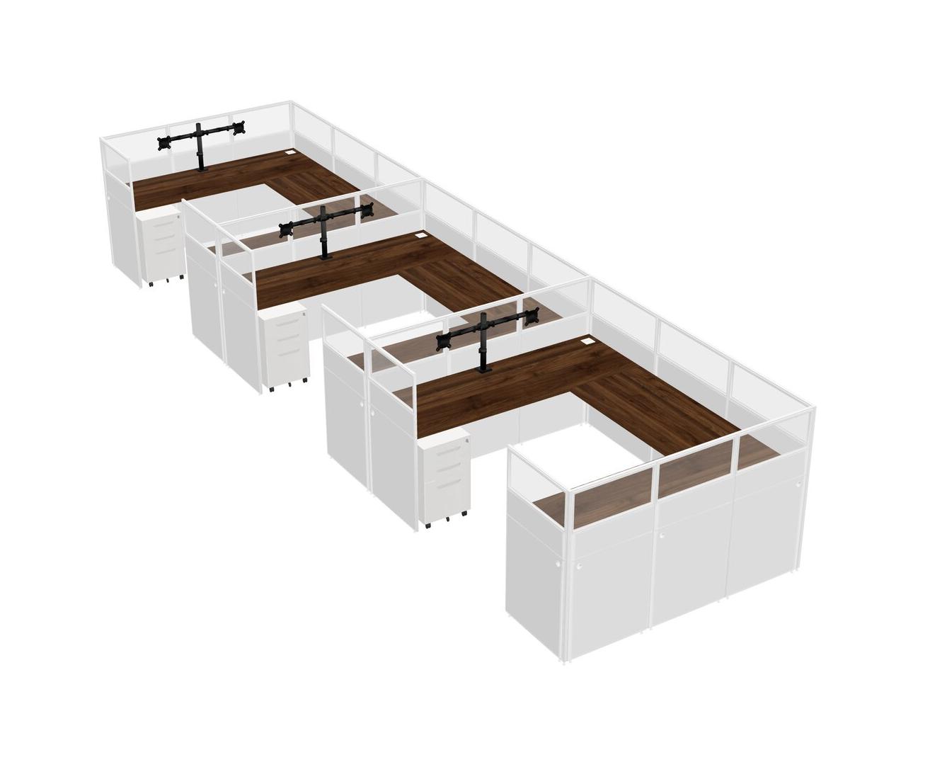 Système De Panneaux En U En Noyer Columbia Pour 3 Personnes + Bras D'écran (bras Doubles) + Tiroirs Mobiles En Métal Pour 3 Utilisateur(s)