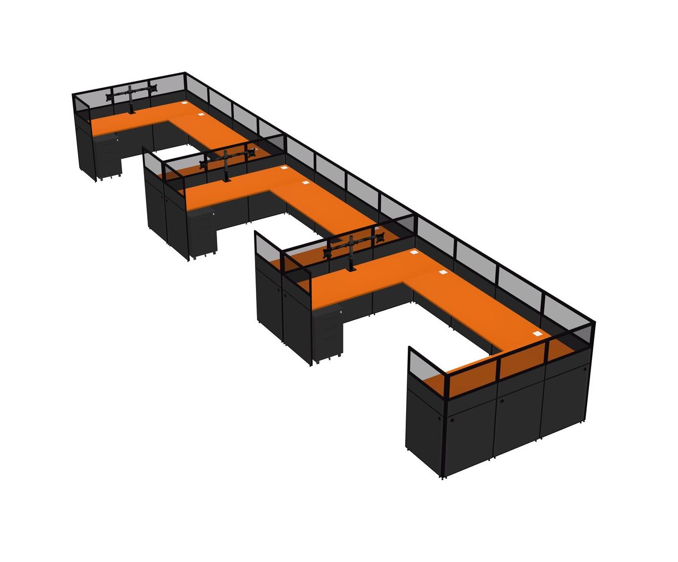 Système De Panneaux En U Orange Pour 3 Personnes + Bras De Moniteur (bras Doubles) + Tiroirs Mobiles En Métal Pour 3 Utilisateur(s)