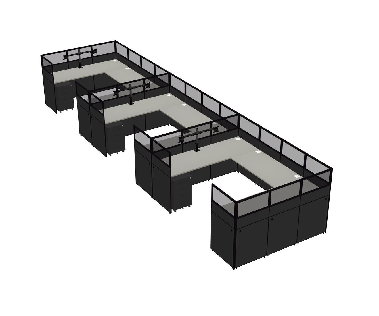 Système De Panneaux En U Grey Shadows Pour 3 Personnes + Bras D'écran (bras Doubles) + Tiroirs Mobiles En Métal Pour 3 Utilisateur(s)