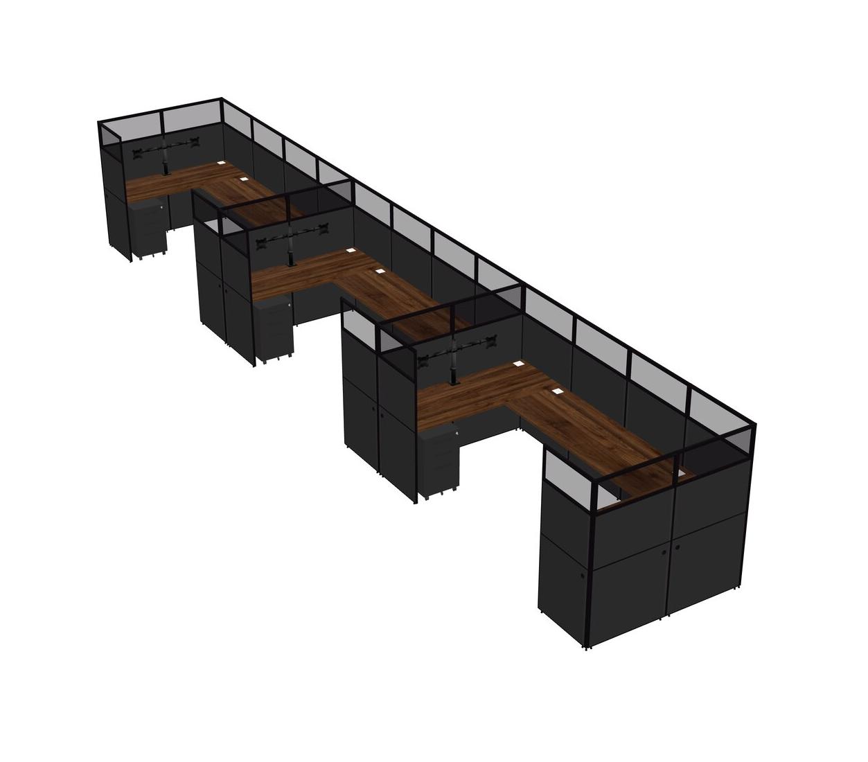 Système De Panneaux En U En Noyer Columbia Pour 3 Personnes + Bras D'écran (bras Doubles) + Tiroirs Mobiles En Métal Pour 3 Utilisateur(s)