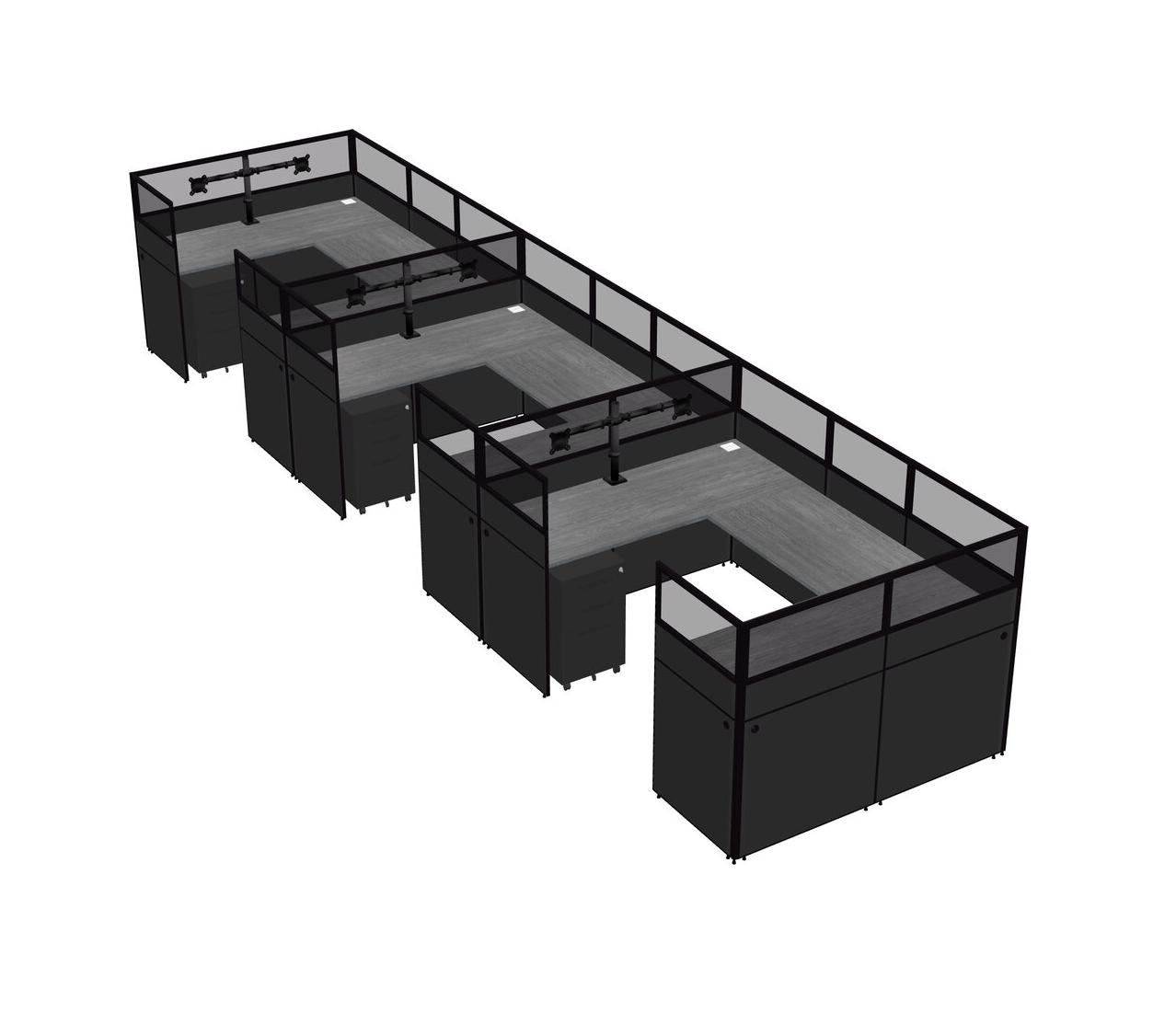 Système De Panneaux En U Gris Pour 3 Personnes + Bras D'écran (bras Doubles) + Tiroirs Mobiles En Métal Pour 3 Utilisateur(s)