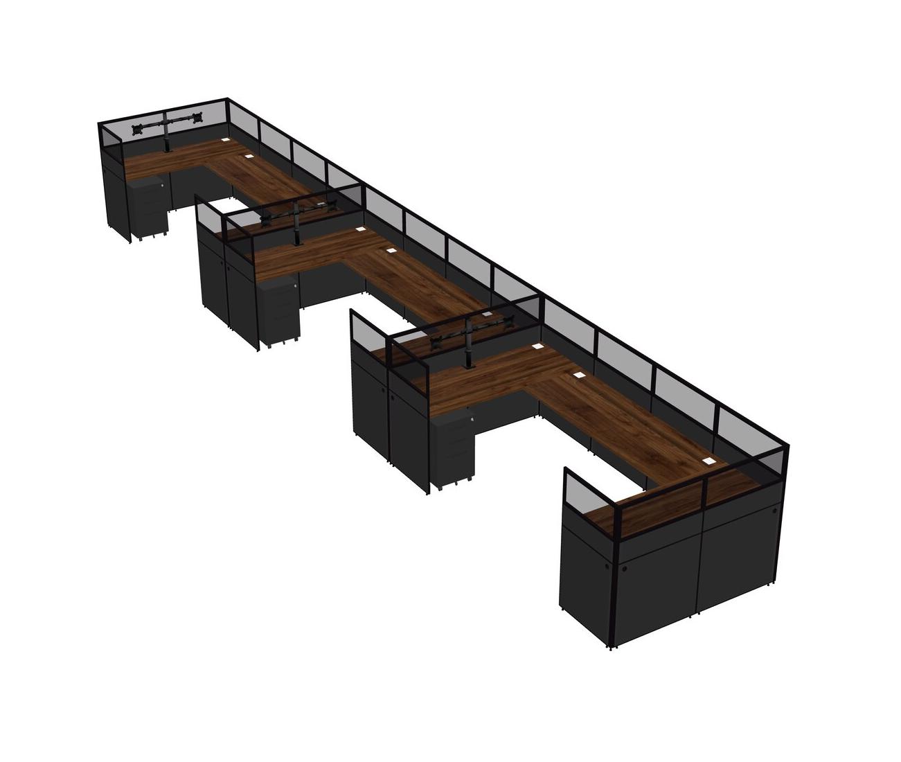 Système De Panneaux En U En Noyer Columbia Pour 3 Personnes + Bras D'écran (bras Doubles) + Tiroirs Mobiles En Métal Pour 3 Utilisateur(s)
