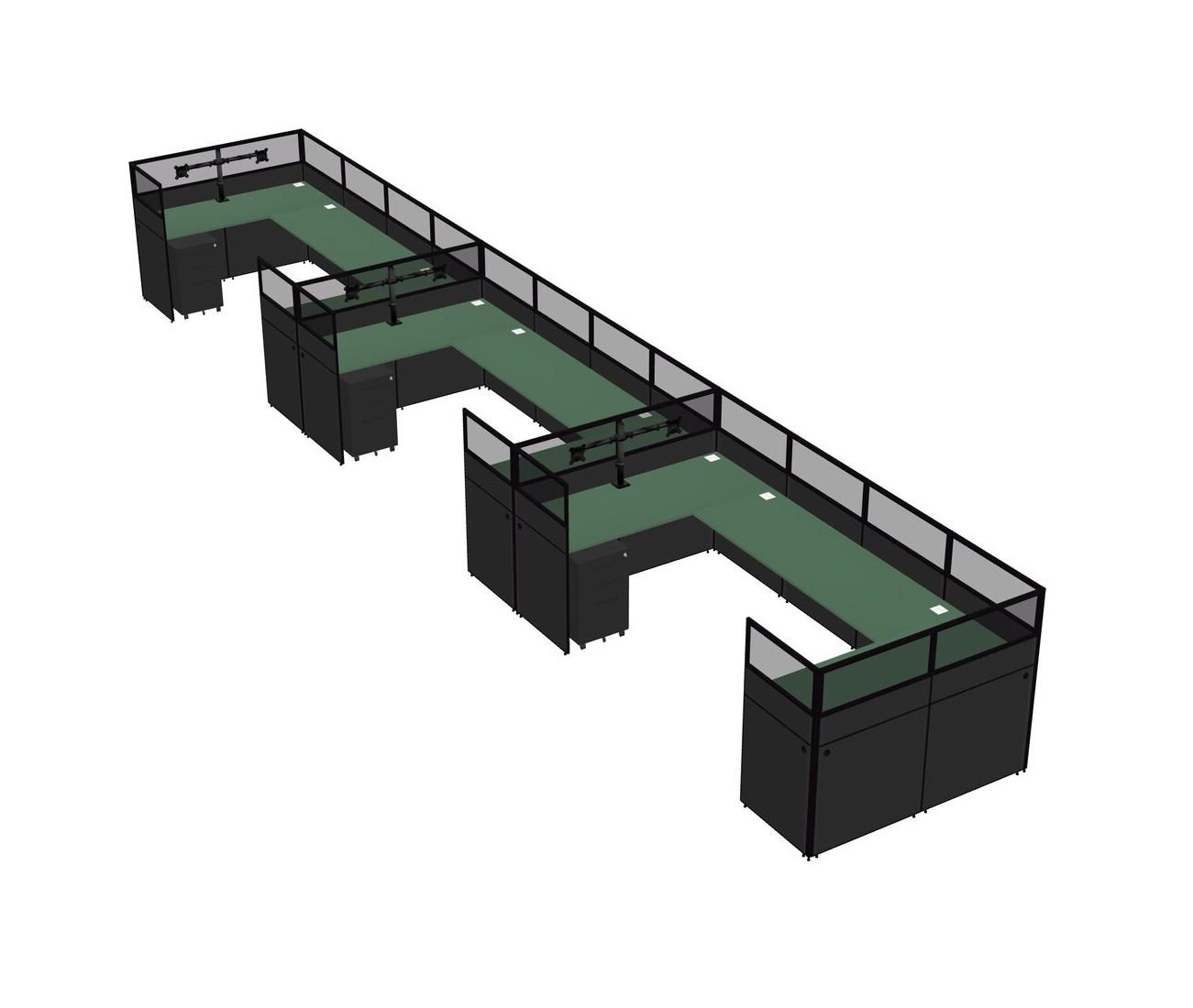 Système De Panneaux En U Vert Pour 3 Personnes + Bras De Moniteur (bras Doubles) + Tiroirs Mobiles En Métal Pour 3 Utilisateur(s)