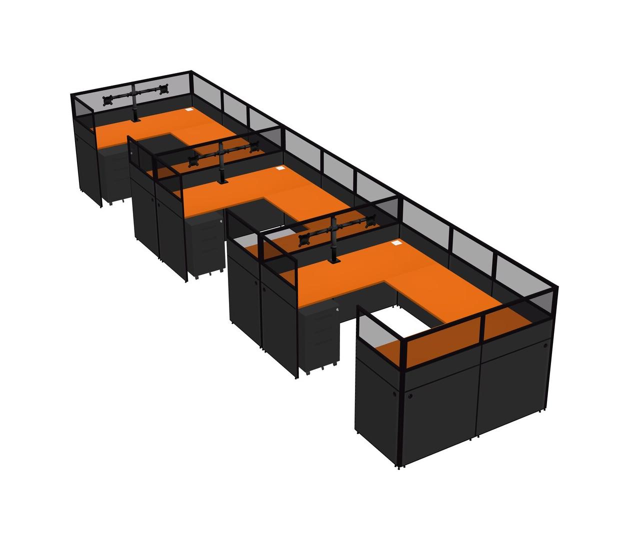 Système De Panneaux En U Orange Pour 3 Personnes + Bras De Moniteur (bras Doubles) + Tiroirs Mobiles En Métal Pour 3 Utilisateur(s)