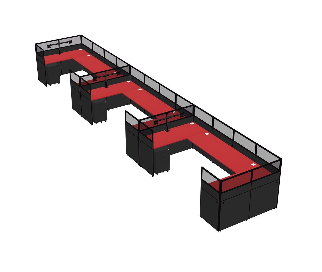 Système De Panneaux En U Prism Red Pour 3 Personnes + Bras D'écran (bras Doubles) + Tiroirs Mobiles En Métal Pour 3 Utilisateur(s)