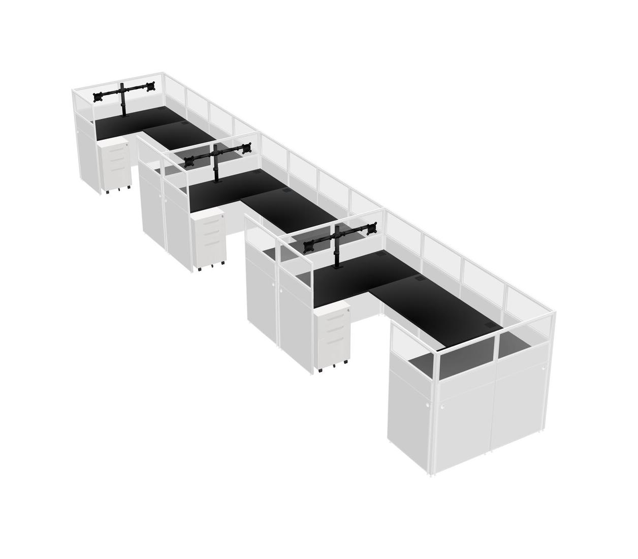 Système De Panneaux En U Noir Pour 3 Personnes + Bras D'écran (bras Doubles) + Tiroirs Mobiles En Métal Pour 3 Utilisateur(s)