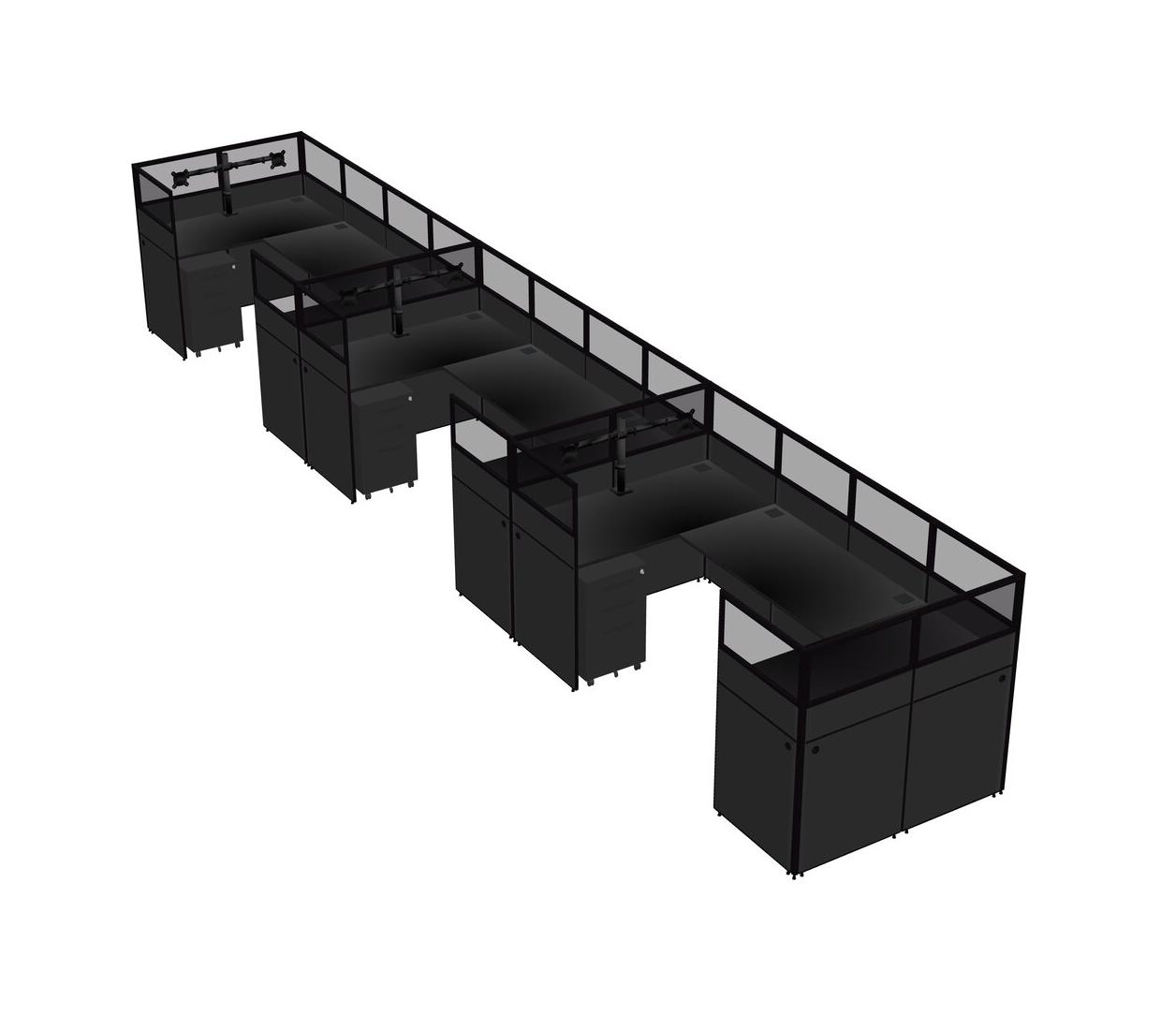 Système De Panneaux En U Noir Pour 3 Personnes + Bras D'écran (bras Doubles) + Tiroirs Mobiles En Métal Pour 3 Utilisateur(s)