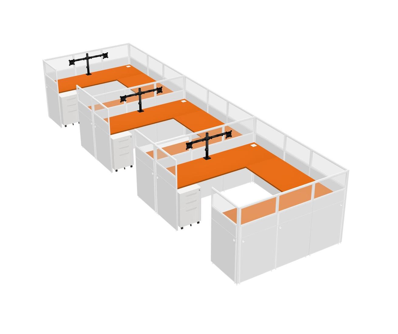 Système De Panneaux En U Orange Pour 3 Personnes + Bras De Moniteur (bras Doubles) + Tiroirs Mobiles En Métal Pour 3 Utilisateur(s)
