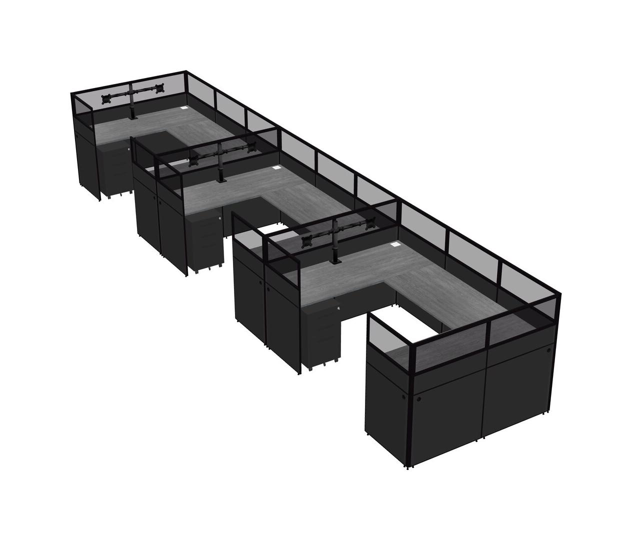 Système De Panneaux En U Gris Pour 3 Personnes + Bras D'écran (bras Doubles) + Tiroirs Mobiles En Métal Pour 3 Utilisateur(s)