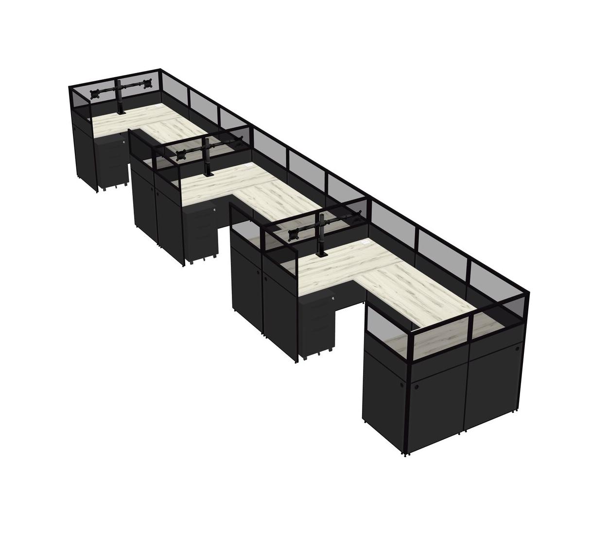 Système De Panneaux En U Heinne Holz Pour 3 Personnes + Bras D'écran (bras Doubles) + Tiroirs Mobiles En Métal Pour 3 Utilisateur(s)