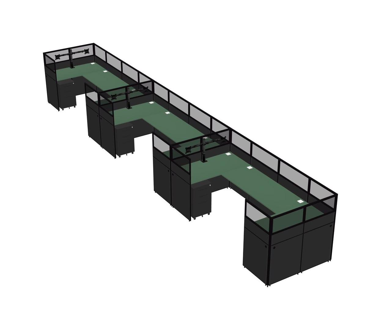Système De Panneaux En U Vert Pour 3 Personnes + Bras De Moniteur (bras Doubles) + Tiroirs Mobiles En Métal Pour 3 Utilisateur(s)