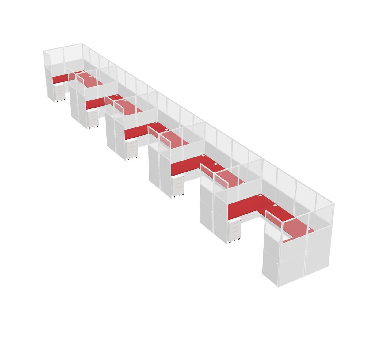 Système De Panneaux En U Prism Red Pour 5 Personnes + Tiroirs Mobiles En Métal Pour 5 Utilisateur(s)
