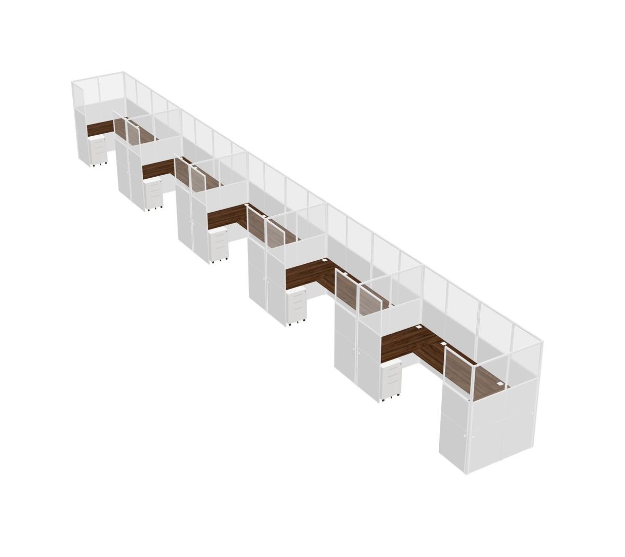 Système De Panneaux En U En Noyer Columbia Pour 5 Personnes + Tiroirs Mobiles En Métal Pour 5 Utilisateur(s)