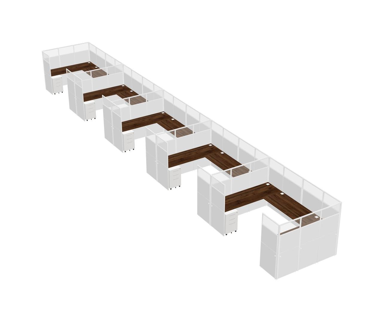 Système De Panneaux En U En Noyer Columbia Pour 5 Personnes + Tiroirs Mobiles En Métal Pour 5 Utilisateur(s)