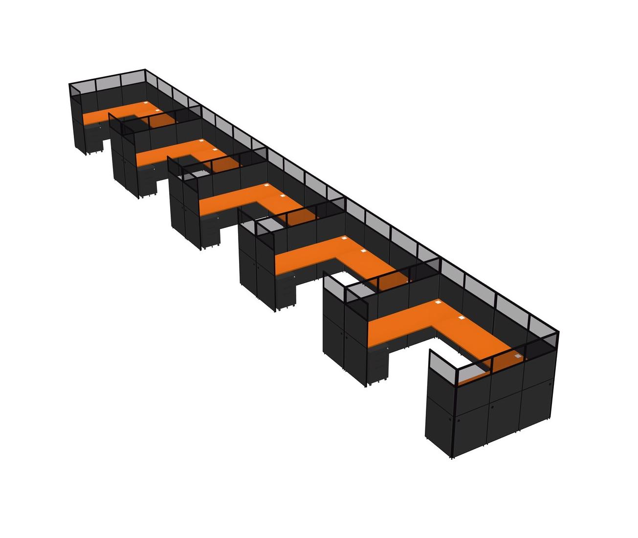 Système De Panneaux En U Orange Pour 5 Personnes + Tiroirs Mobiles En Métal Pour 5 Utilisateur(s)