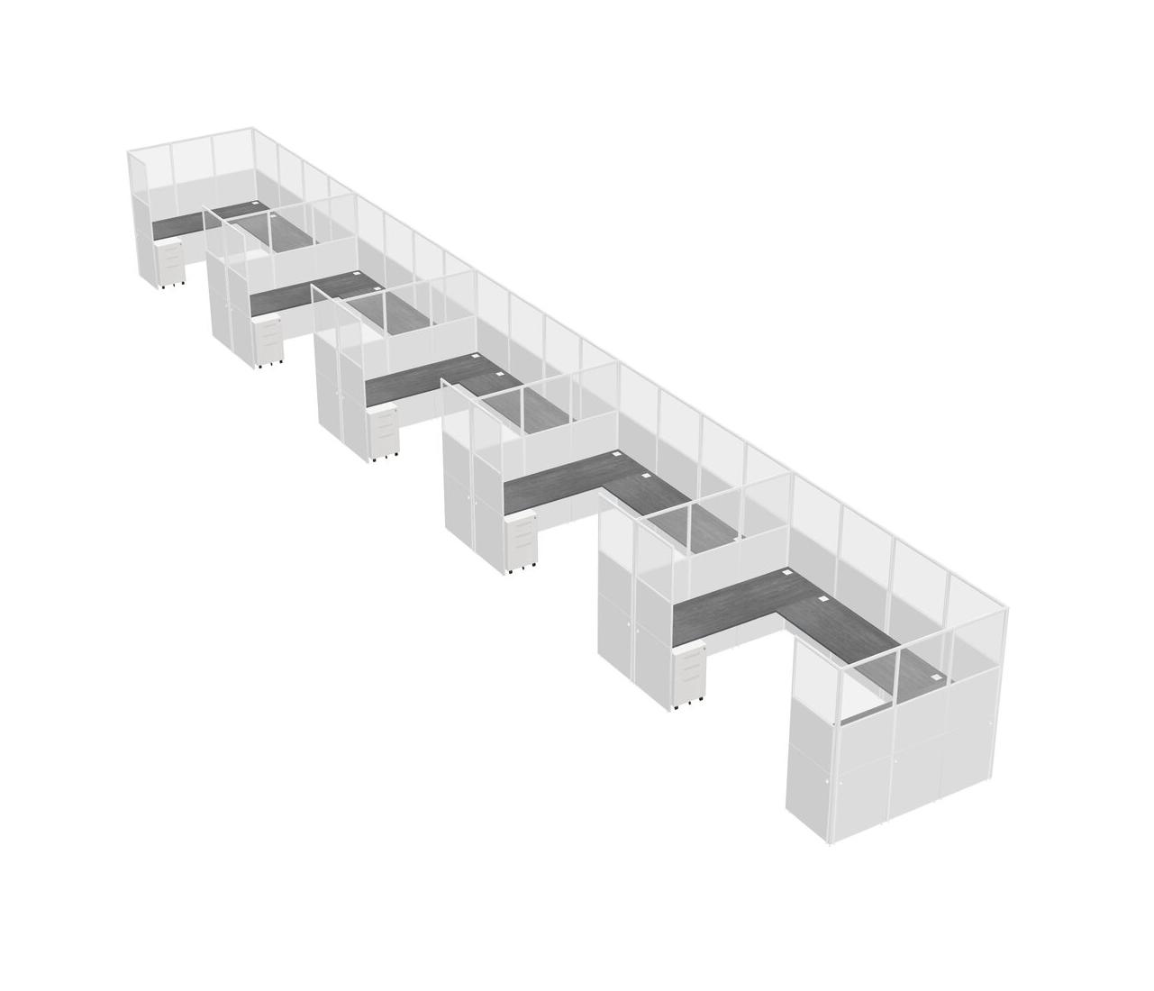 Système De Panneaux En U Gris Pour 5 Personnes + Tiroirs Mobiles En Métal Pour 5 Utilisateur(s)