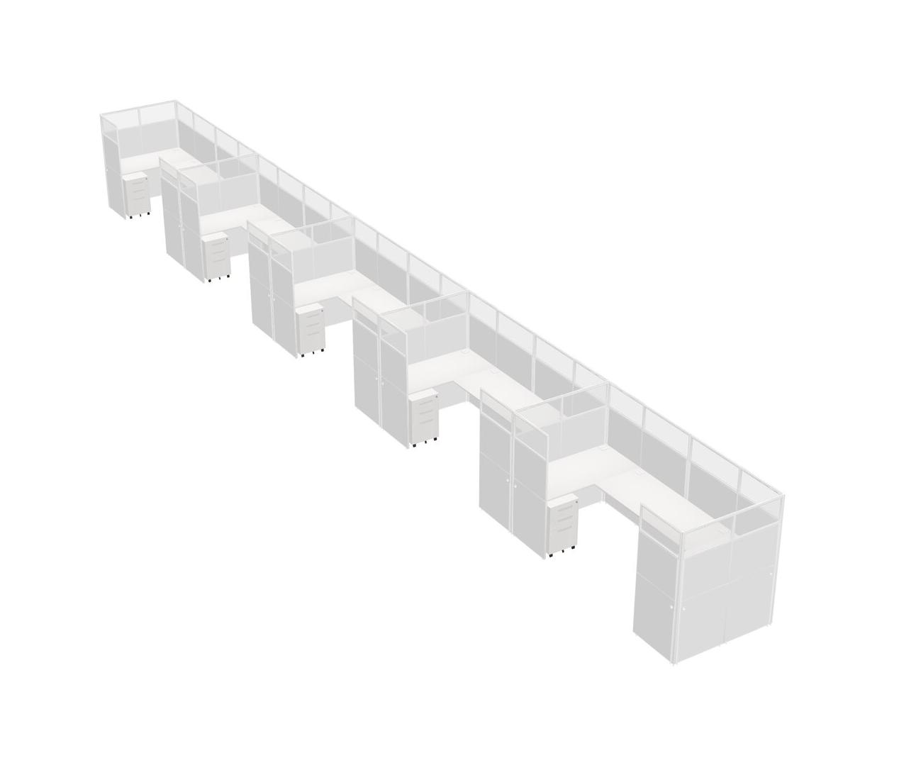 Système De Panneaux En U Blancs Pour 5 Personnes + Tiroirs Mobiles En Métal Pour 5 Utilisateur(s)