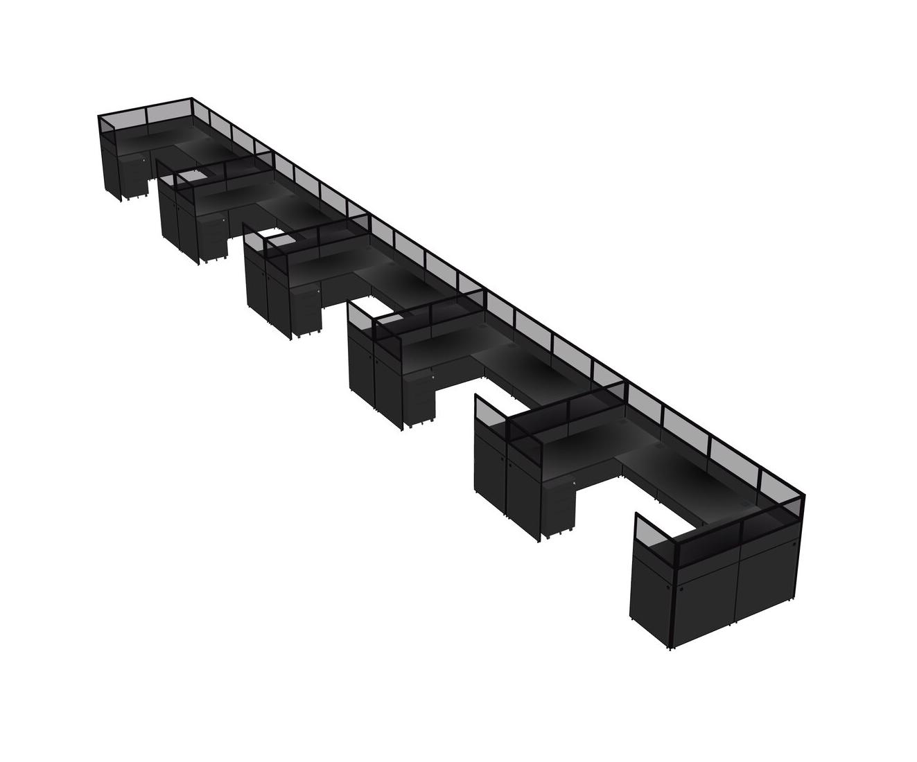 Système De Panneaux En U Noir Pour 5 Personnes + Tiroirs Mobiles En Métal Pour 5 Utilisateur(s)