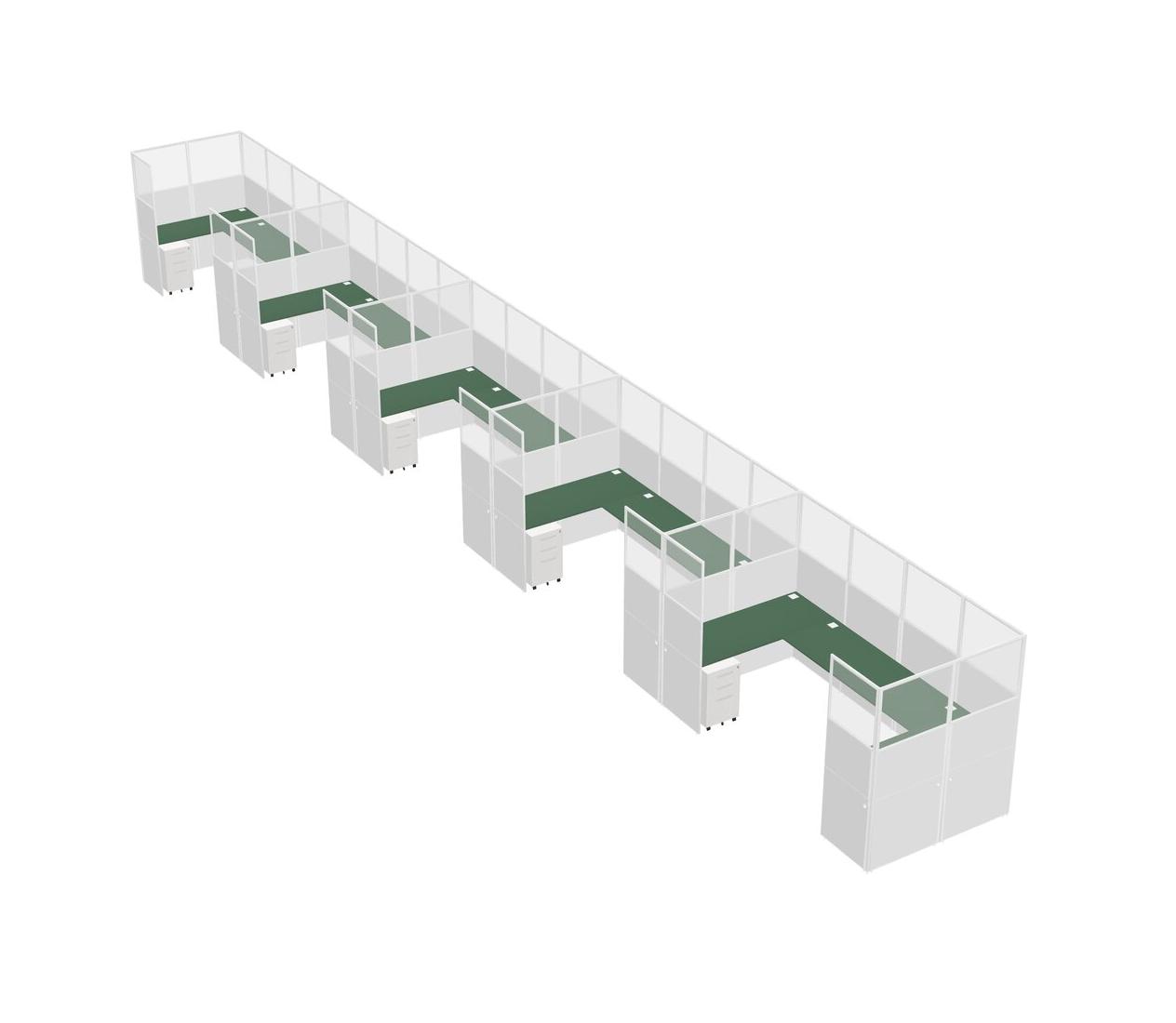 Système De Panneaux En U Vert Pour 5 Personnes + Tiroirs Mobiles En Métal Pour 5 Utilisateur(s)