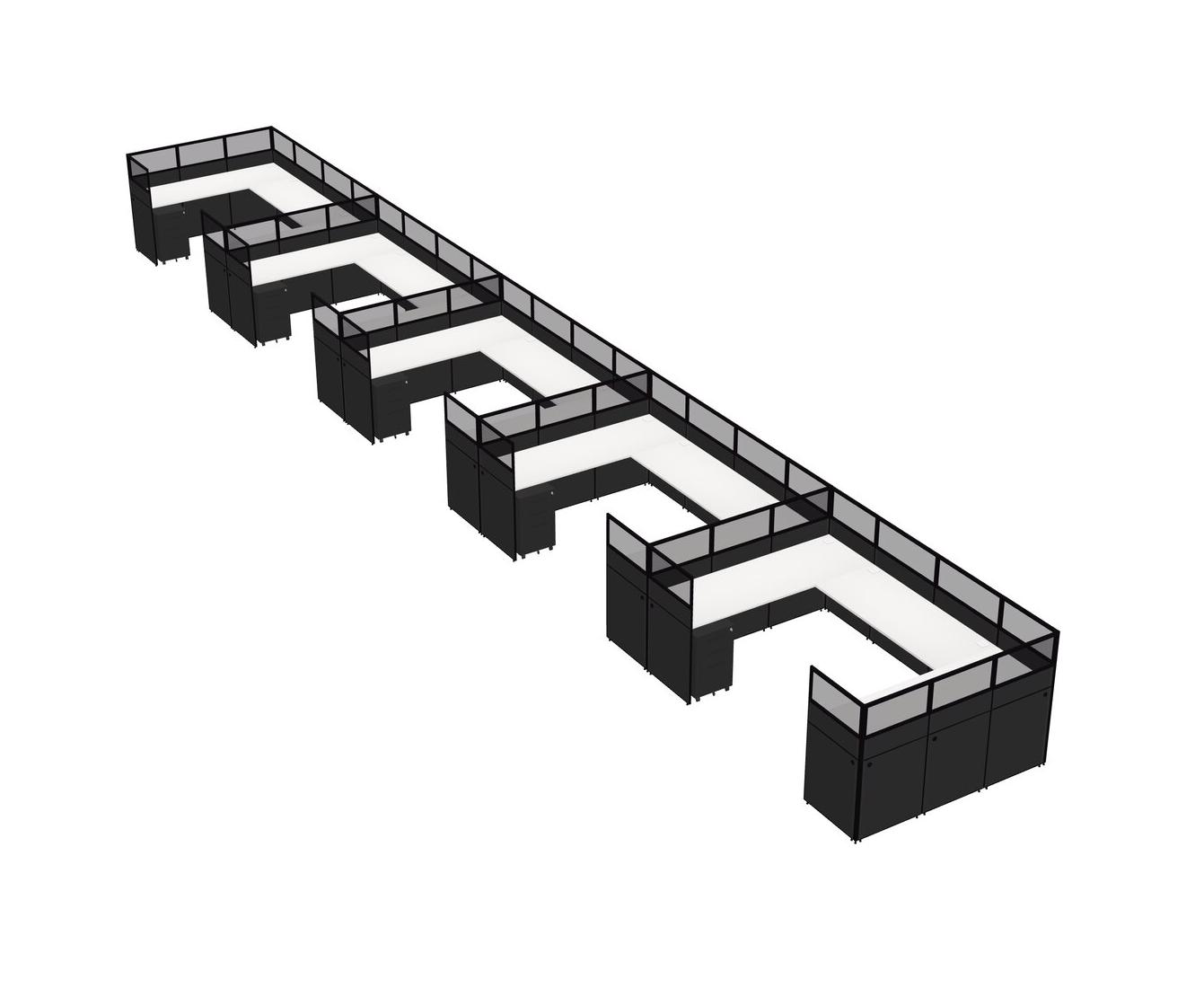 Système De Panneaux En U Blancs Pour 5 Personnes + Tiroirs Mobiles En Métal Pour 5 Utilisateur(s)