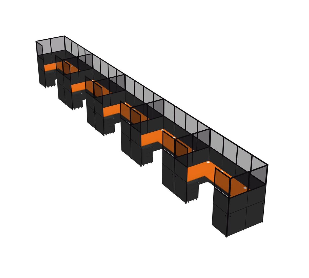 Système De Panneaux En U Orange Pour 5 Personnes + Tiroirs Mobiles En Métal Pour 5 Utilisateur(s)