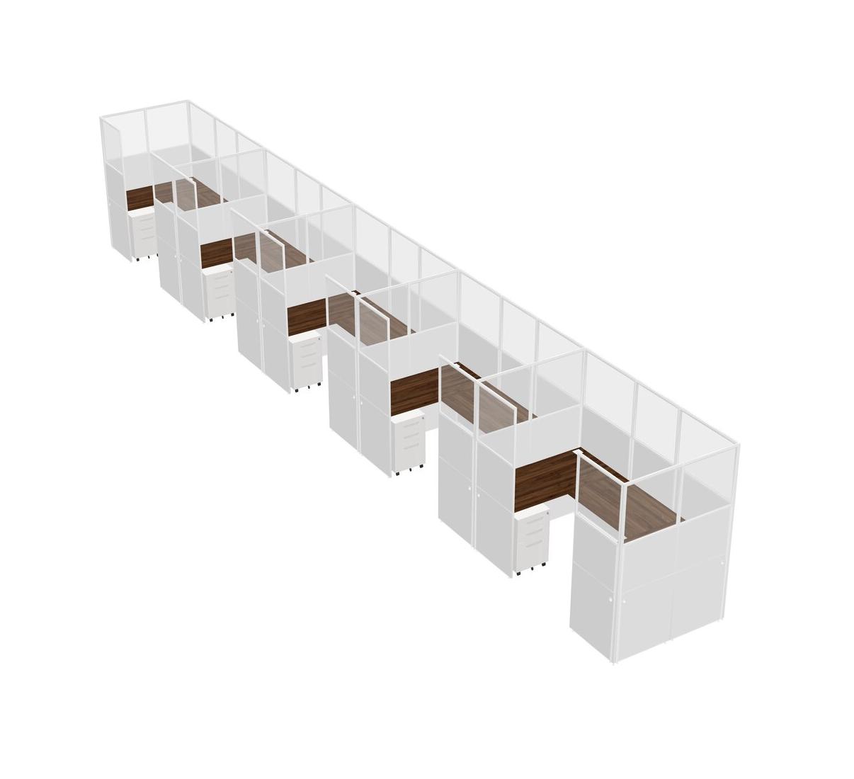 Système De Panneaux En U En Noyer Columbia Pour 5 Personnes + Tiroirs Mobiles En Métal Pour 5 Utilisateur(s)
